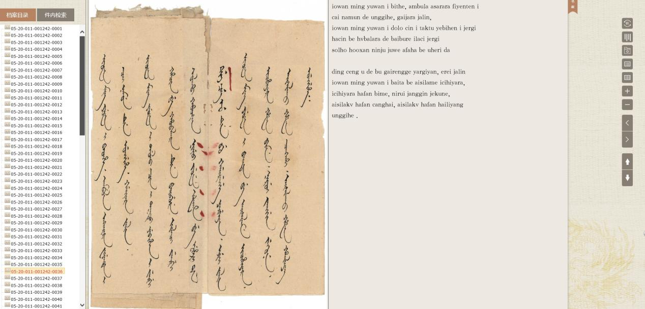 内务府满文杂件(广储司)全文检索数据库阅览界面