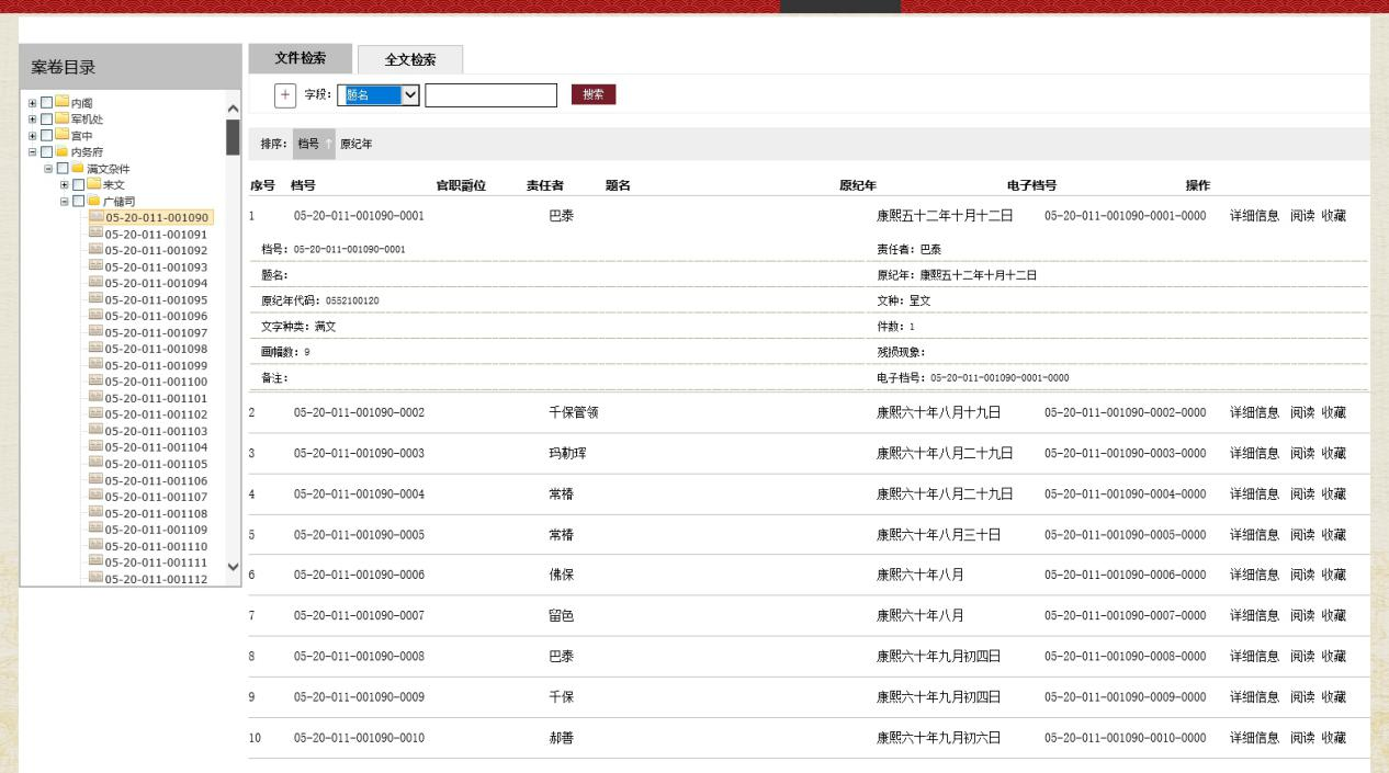 内务府满文杂件(广储司)全文检索数据库文件检索界面